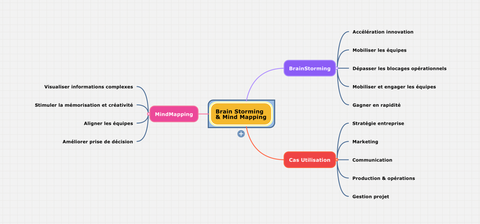 Dans tous les cas, la même mécanique se répète : on explore (brainstorming), puis on structure (mind mapping). C’est simple, rapide, et surtout : extrêmement performant.