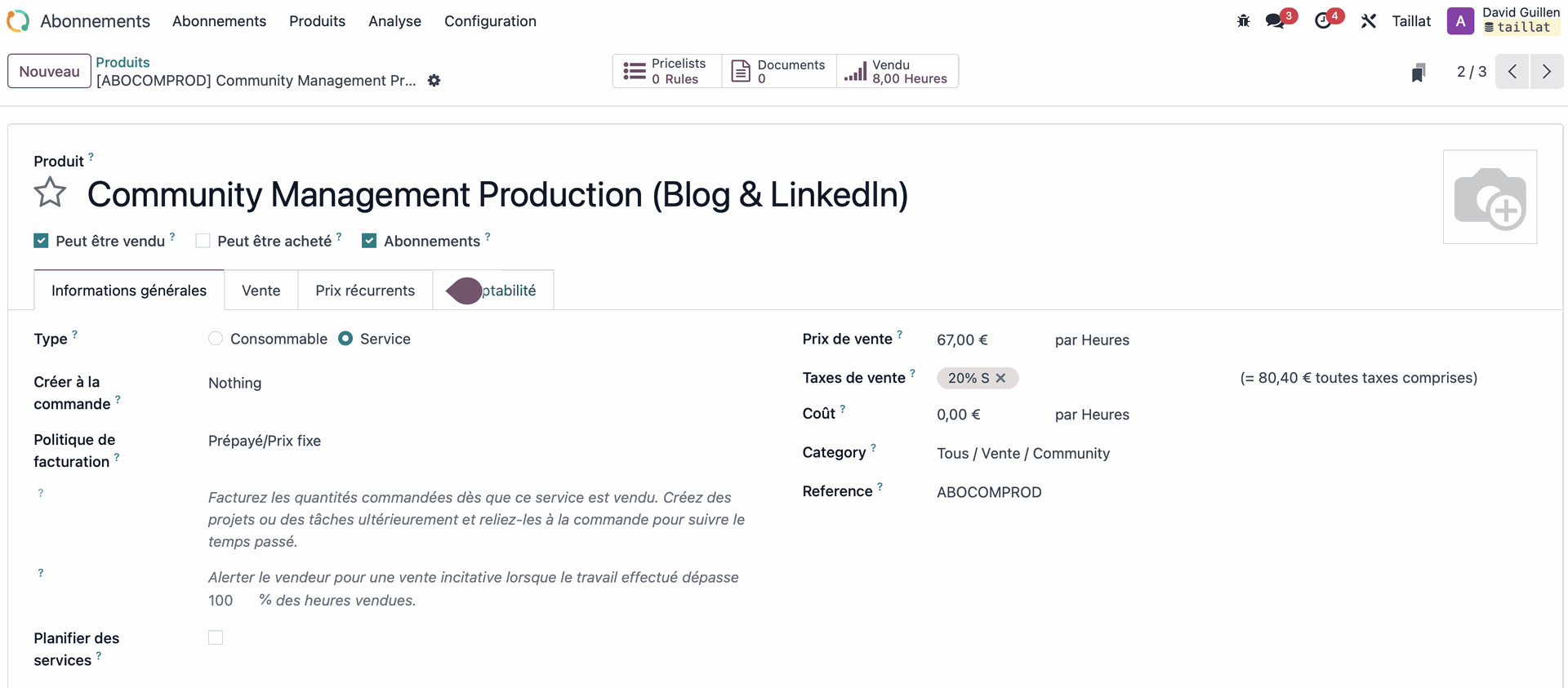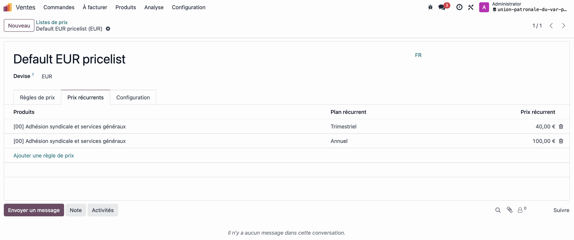 La liste de prix va permettre pour un même produit d'abonnement de définir des effets prix selon la périodicité de l'abonnement
